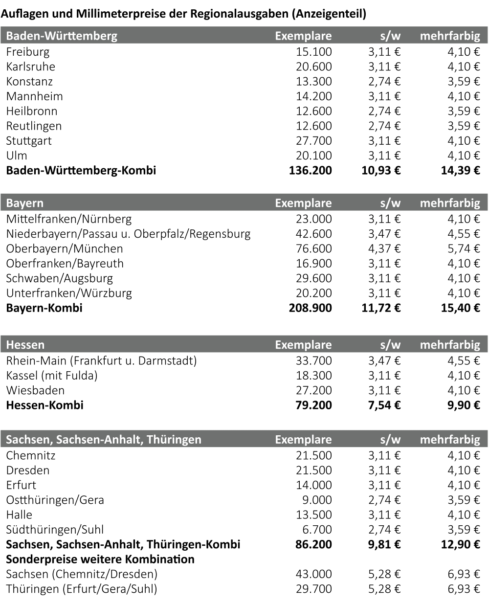 23 regionale Einzelausgaben für Ihre Werbung ohne Streuverluste